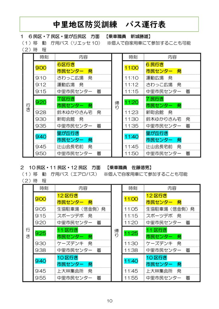 中里10民区・11民区・12民区方面 には当日バスが運行します。