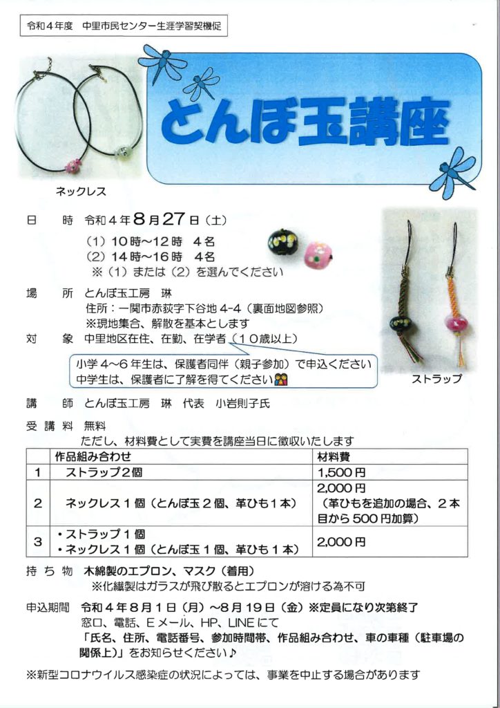 【PDF版】とんぼ玉講座チラシ