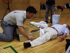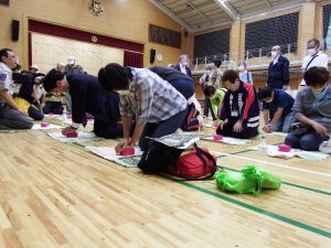 講演後の訓練では、共助の大切さを学ぶ機会として、心肺蘇生法や応急手当の訓練、非常時から平常時に戻るまでの生活に必要な物品や日頃からの備えを考える訓練がありました。