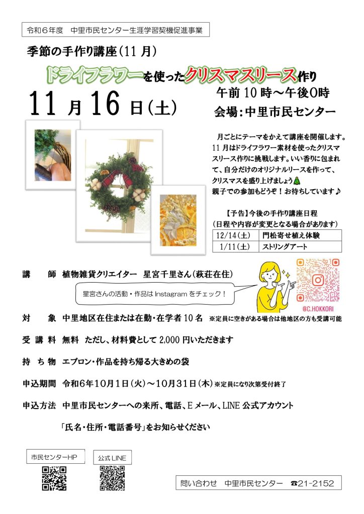 申込期間:10月1日(火)~10月31日(木)※定員になり次第受付終了