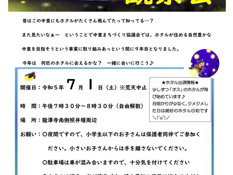 今年もあっという間に夏至を迎え、ホタルがちらほら飛び始める季節となりました。すっかり恒例となった「ホタルの観察会」を開催します。 年々飛び交うホタルが増えています。もしかするとゲンジボタルのほかヘイ …