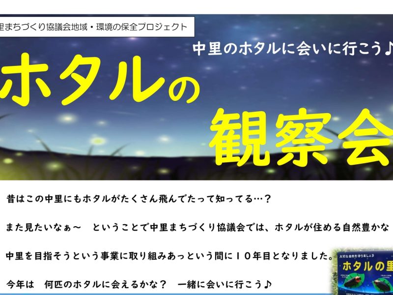 今年もやってまいりました「ホタルの季節」中里まちづくり協議会 地域・環境の保全プロジェクトチームでは昨年から地道にホタルの観察を続けています。昨年は6月7日にゲンジボタルの飛び始めを確認しましたが、 …